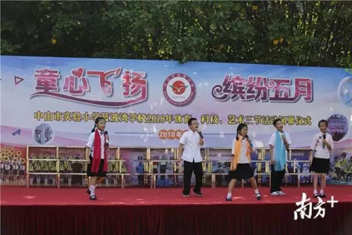 5月31日上午,中山市實驗小學藍波灣學校2018年體育、科技、藝術三節活動閉幕儀式舉行。現場,全校1300多名學生帶來了十三個節目表演。在這里,孩子們個個都是可愛的“小演員”。