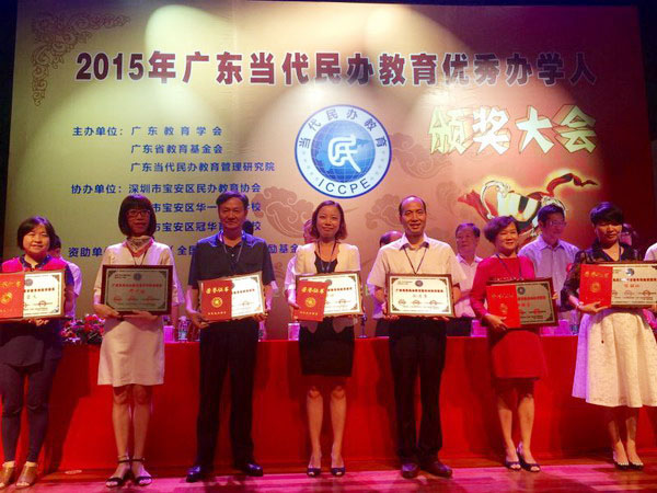 首屆“廣東當(dāng)代民辦教育優(yōu)秀辦學(xué)人”頒獎(jiǎng)大會(huì)于2015年9月18日上午在深圳市寶安區(qū)群眾文化藝術(shù)館隆重舉行。本次活動(dòng)由廣東教育學(xué)會(huì)、廣東當(dāng)代民辦教育管理研究院、廣東省教育基金會(huì)共同舉辦,參加大會(huì)的還有此次獲獎(jiǎng)的優(yōu)秀辦學(xué)人以及全省各地的其他民辦學(xué)校舉辦人和校長(zhǎng)約250人。