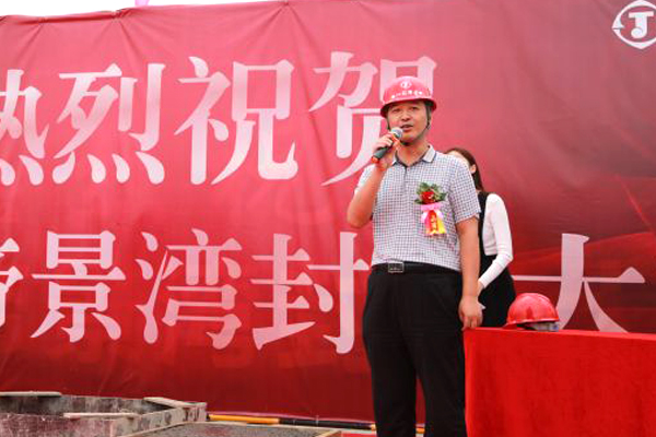 在封頂儀式上,施工單位江蘇華建副總經(jīng)理周學(xué)軍代表施工單位講話,他說:華建集團將繼續(xù)秉承“鑄造精品,追求卓越”的管理理念,為業(yè)主精心打造一個管理科學(xué)嚴(yán)謹(jǐn)、工程質(zhì)量精細的華策·帝景灣。