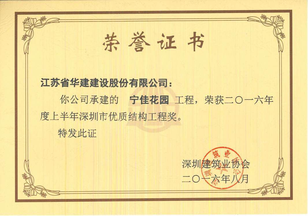 2016年5月,華策?中心城榮獲深圳建筑業協會組織頒發的“安全生產與文明施工優良工地”獎;8月,項目榮獲深圳建筑業協會頒發的“2016年度上半年深圳市優質結構工程獎”及深圳市勘察設計行業協會頒發的“第三屆深圳市建筑工程施工圖編制質量金獎”雙項殊榮。
