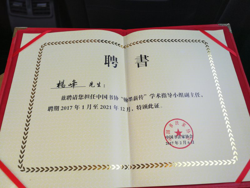 楊峰主席的聘書
