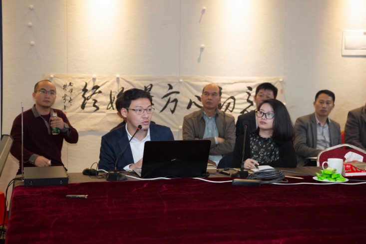 Gensler建筑咨詢(上海)有限公司資深設計師盧雨江(前排左一)匯報室內方案