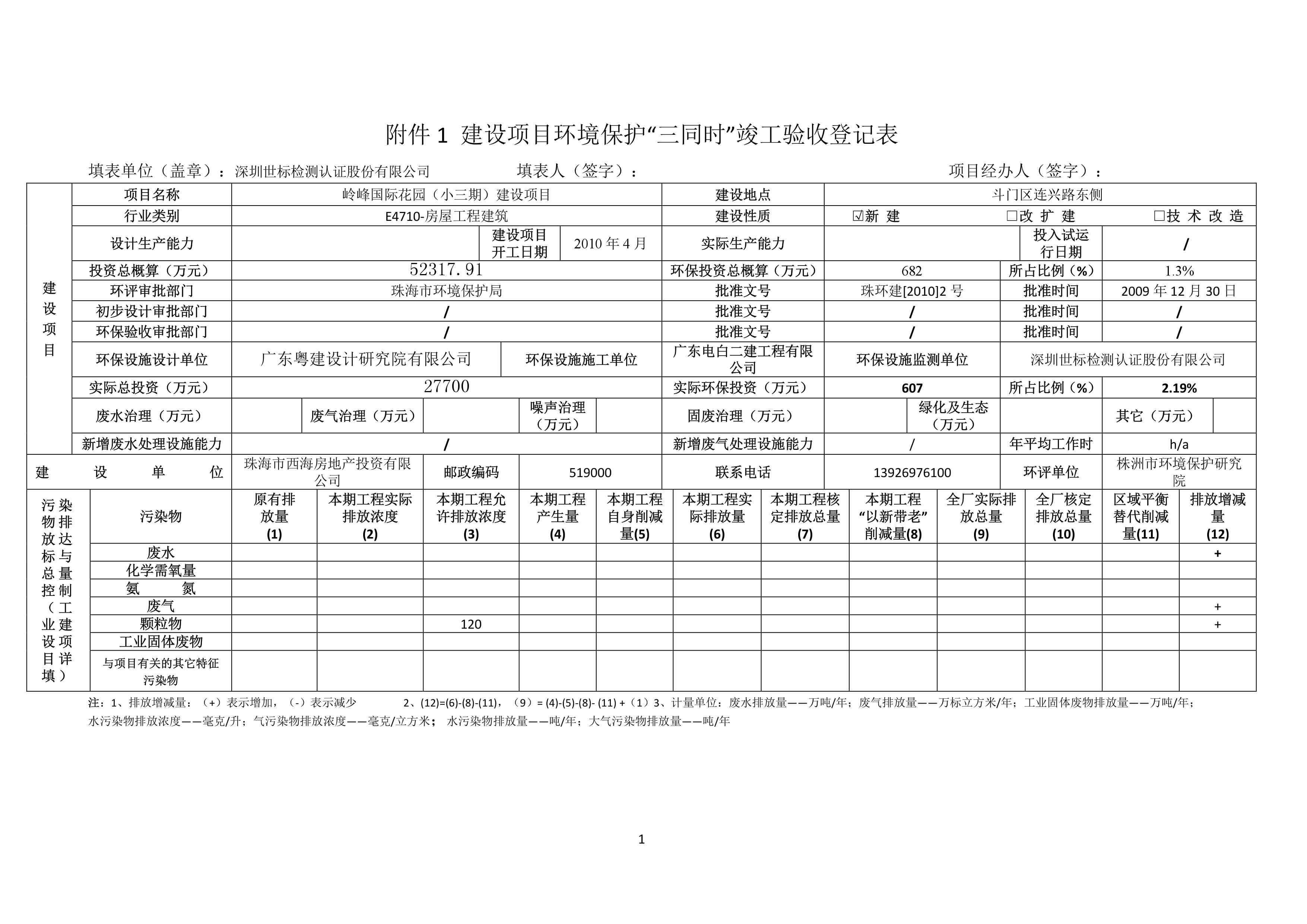 珠海市華策集團有限公司(以下簡稱“華策集團”)下屬子公司—珠海市西海房地產投資有限公司開發的嶺峰國際花園(小三期)房地產項目現已竣工,現將嶺峰國際花園(小三期)項目環保竣工驗收報告內容在華策集團官網進行公示。