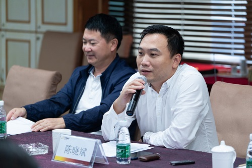 華策集團董事聯席總裁陳曉斌(右)在交流會上發言