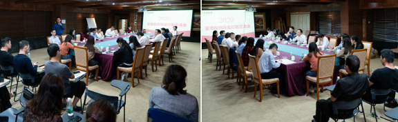 華策集團董事財務總監楊家瓊(左)在交流會上發言