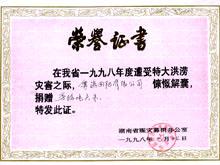 日湖南救災委員會授予集團“抗震救災榮譽證書”。